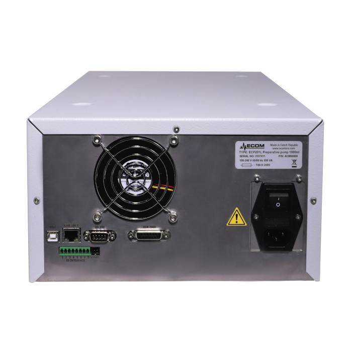 The ECP201L Preparative Pump is an innovative, powerful, and cost-effective unit for preparative liquid chromatography where high pressure is needed. The pump with 4 low-pressure valves delivers a flow rate of up to 1000 ml/min at a very high output pressure of up to 15 MPa (2176 psi).