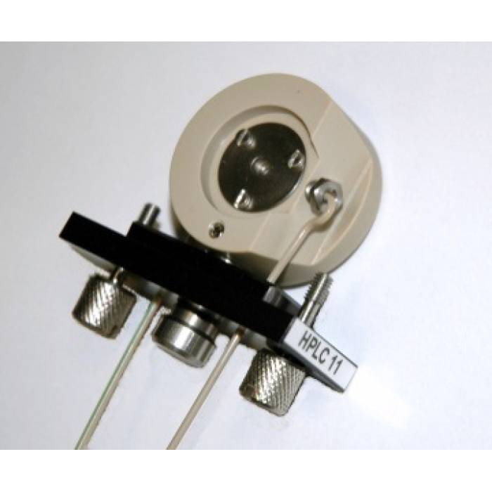 Analytical cell HPLC 11 PEEK can be used in detectors Sapphire, Opal LED and Apatite. Cell volume is 10 ul and optical path 5 mm. Conical design of the cell ensures decrease of the influence of flow-rate and temperature change. Unlike previous types of cells, this cell is supplied without capillaries, therefore by selection of suitable internal diameter of capillary can be reached flow-rate up to 50 ml/min.