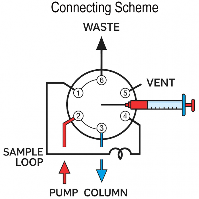 The needle port can be used with standard microliter syringes (e.g. Hamilton) or plastic-type blunt syringes (with PST3 needlepoint style) with 0.7mm needles.