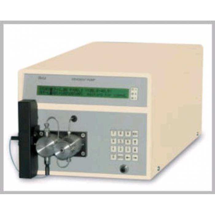 With a flow rate of 0.01 – 10 ml/min and a pressure limit of 40 MPa, this pump is suited for analytical applications in liquid chromatography. It is designed with main and auxiliary pump heads connected in series with a piston diameter of 1/8”. It has a high-performance processor unit and a three-way gradient valve. This allows the pumps to be used for creating a low-pressure gradient, i.e., gradual changes of mobile phase composition by mixing up to three liquids at the pump’s entry. It is also possible to predefine the percentage of composition when using the pump in isocratic mode. The gradient course can be defined either through the keypad or uploaded from a computer.