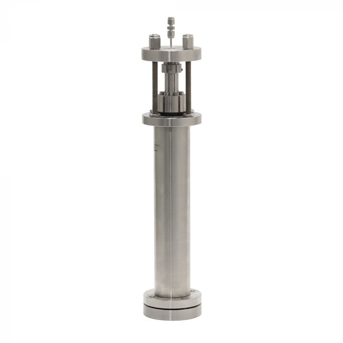 Hydraulic cylinders fitted on the upper flange are offered with manual oil pumps as well as with fully automated electric motor-driven devices for column packing/unpacking procedures.