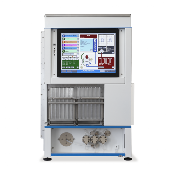 This highly effective, compact flash system contains a UV-VIS DAD detector, a flash gradient pump, and a fraction collector. The system can measure at four wavelengths simultaneously and scan the entire spectrum. Furthermore, 3D data can be displayed. One of the system‘s main advantages is its special pumping system design, which suppresses pulsation. The system is controlled via a built-in PC and touchscreen. This modular solution can also be configured according to customer requirements.
