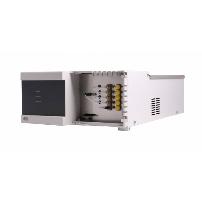 Degasser - unique design assures reliable operation and the highest level of continuous performance available without the need for helium degassing. Up to four solvent lines may be degassed simultaneously by one unit. One additional channel is reserved for degassing of gradient valve output. Extremely low internal volume of each Systec AF channel (480 μl) offersvery fast equilibration and very short startup times compared with PTFE degassing channels which have the same degassing efficiency.