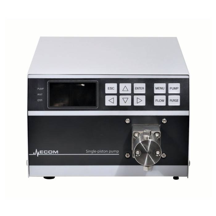 Single piston pump with a flow rate of 0.001‑10.00 ml/min and limit of pressure at 40 MPa.
