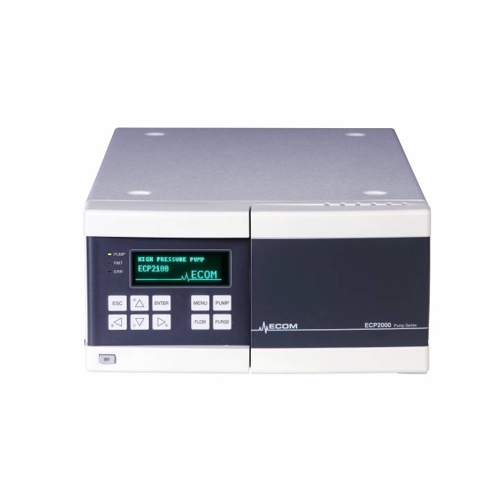 Gradient function: These pumps work as isocratic pumps, and, together with ECOM gradient boxes, they also work as gradient pumps. Gradient boxes ECB2005, ECB2005PC are equipped with a four-way gradient mixing valve and must be ordered together with the pump. These sophisticated units allow for achieving a precise low-pressure gradient, i.e. gradual changes of solvent composition by mixing up to four liquids at the pump‘s entry. The gradient profile can be defined via a computer or manually using a display and a keypad. Without the use of a gradient box, the pump works as isocratic, with the option of one solvent and the composition of the mobile phase being chosen by the user.
