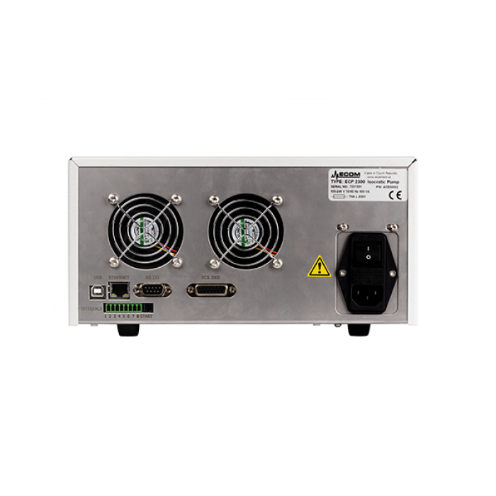 Gradient function: These pumps work as isocratic pumps, and, together with ECOM gradient boxes, they also work as gradient pumps. Gradient boxes ECB2005, and ECB2005PC are equipped with a four-way gradient mixing valve and must be ordered together with the pump. These sophisticated units allow for achieving a precise low-pressure gradient, i.e. gradual changes of solvent composition by mixing up to four liquids at the pump‘s entry. The gradient profile can be defined via a computer or manually using a display and a keypad. Without the use of a gradient box, the pump works as isocratic, with the option of one solvent and the composition of the mobile phase being chosen by the user.