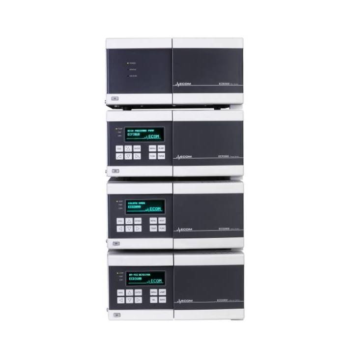 Highly effective HPLC system containing UV-VIS detector, column oven, analytical pump, and gradient box. Detector with continuously variable wavelength 190-600 nm and very low noise level offers high-speed sampling up to 100 Hz.