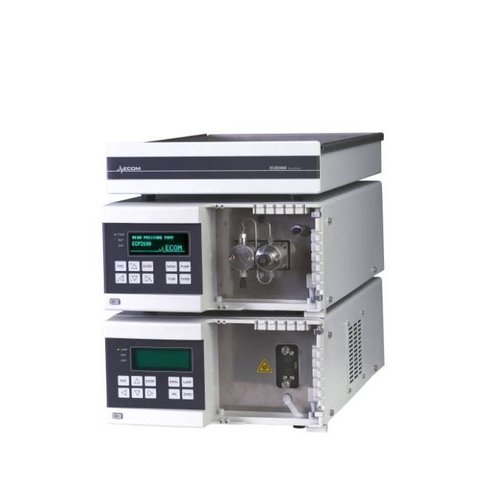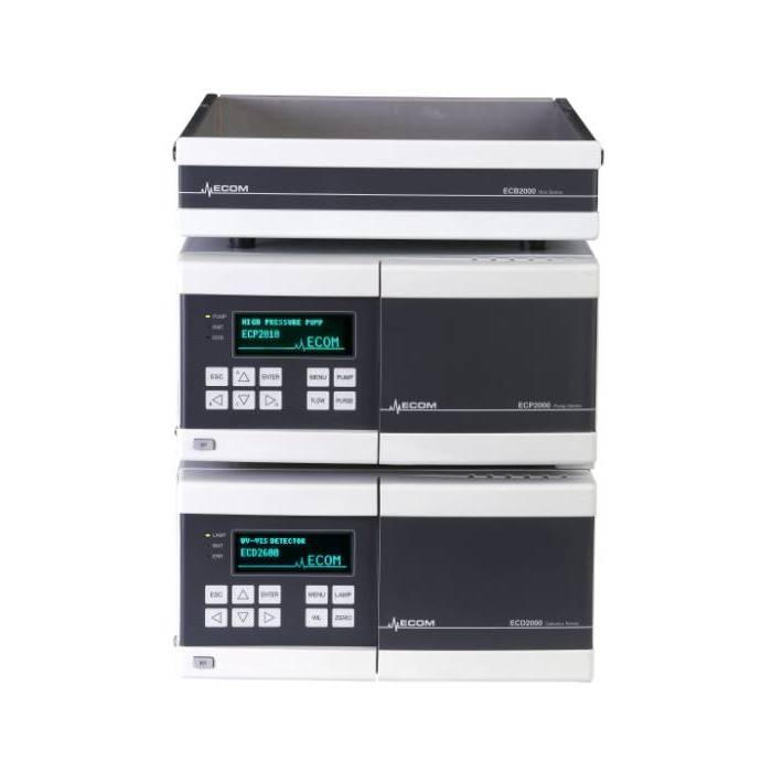Highly effective HPLC system containing a UV-VIS detector, an analytical pump, and a box for mobile phase bottles. The detector with continuously variable wavelengths of 190-600 nm and a very low noise level offers high-speed sampling up to 100 Hz.