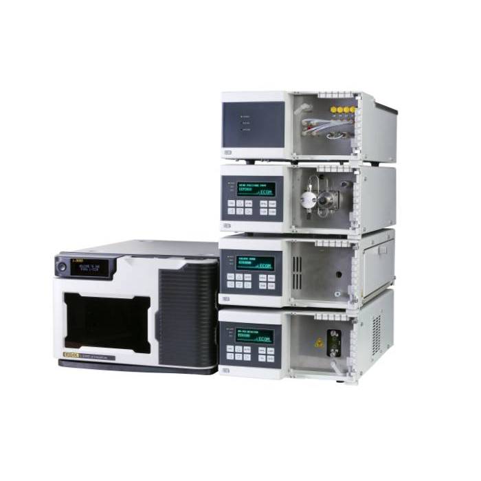 Highly effective HPLC system containing a UV-VIS detector, a column oven, an analytical pump, a gradient box, and an autosampler.
