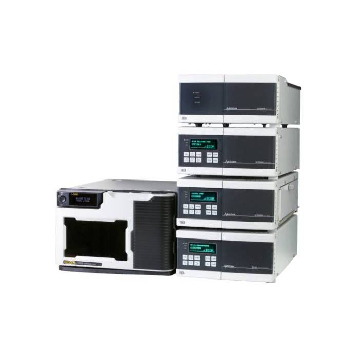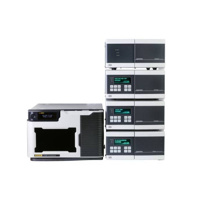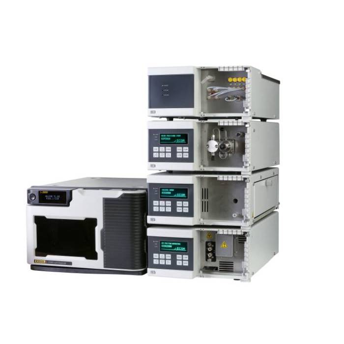 Highly effective HPLC system containing a UV-VIS detector, a column oven, an analytical pump, a gradient box, and an autosampler.