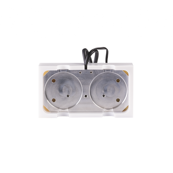 The thermostat is designed for applications where liquids with a low melting point are pumped. It is equipped with a temperature regulator, where the minimum and maximum temperature can be set. Heating is carried out by powerful heating resistors, it is mounted on pump blocks, where the heated part is isolated by a massive cover made of PTFE. The thermostat is powered by an AC/DC power source, which is included in the delivery.