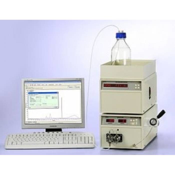 High effective system for routine analysis by constant flow rate of mobile phase (0,01 - 10 ml/min) at one wavelength given used interference filter. Sample is injected using manual injector, controlling and record of analysis is done by Chromatographic software ECOMAC.