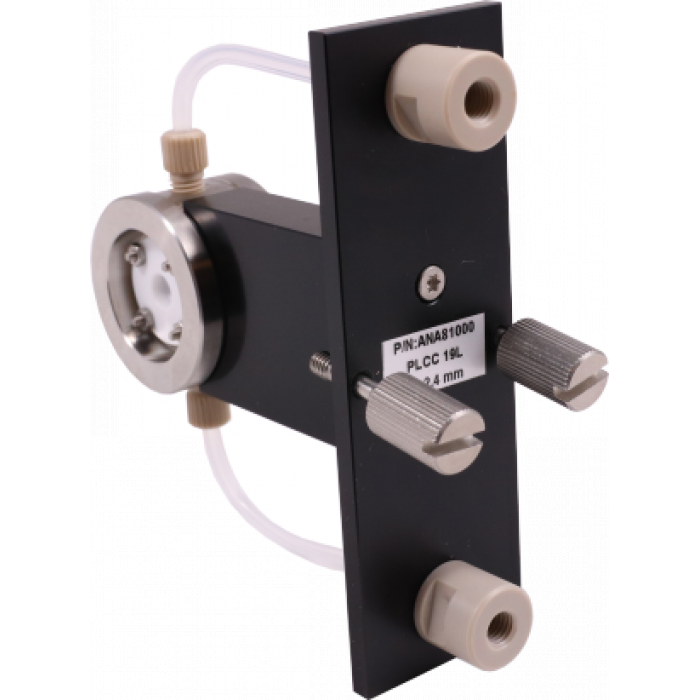 The preparative cell in bracket PLCC19L has a unique design with an optical length of 2.4 mm. It is designed for preparative or flash applications and it is possible to connect it using tubing with OD 1/8" and thread 1⁄4”-28. The internal volume of the preparative cell is 70 µl. The maximum flow rate is 500 ml/min.