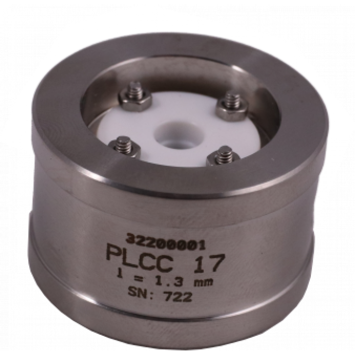 Preparative cell PLCC 17 has a unique design with an optical length of 1.3 mm. It is designed for preparative or flash applications and it is possible to connect it using tubing with OD 1/8" and thread 1/4"-28 . Internal volume of preparative cell is 55 µl. Maximum flow rate is 500 ml/min.