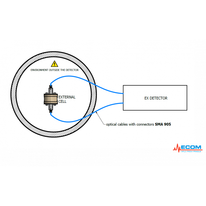 Optical design allows to install the cell out of detector. Light beam is led from detector and back using optical cables with SMA 905 connectors. It is necessary to use low solarization cables to avoid damage by UV light. Suggested cables length is 1 – 2 m because the longer cable the higher light losses. The external cell is equipped with two M3 screws for fixing in your workplace.