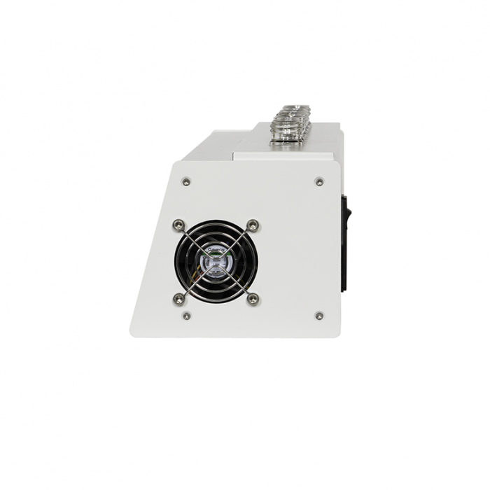 The concentrator consists of an aluminum block that standardly accommodates twelve 10ml vials, featuring an adjustable height gas supply. For other vials dimmensions is used reducing adapter.